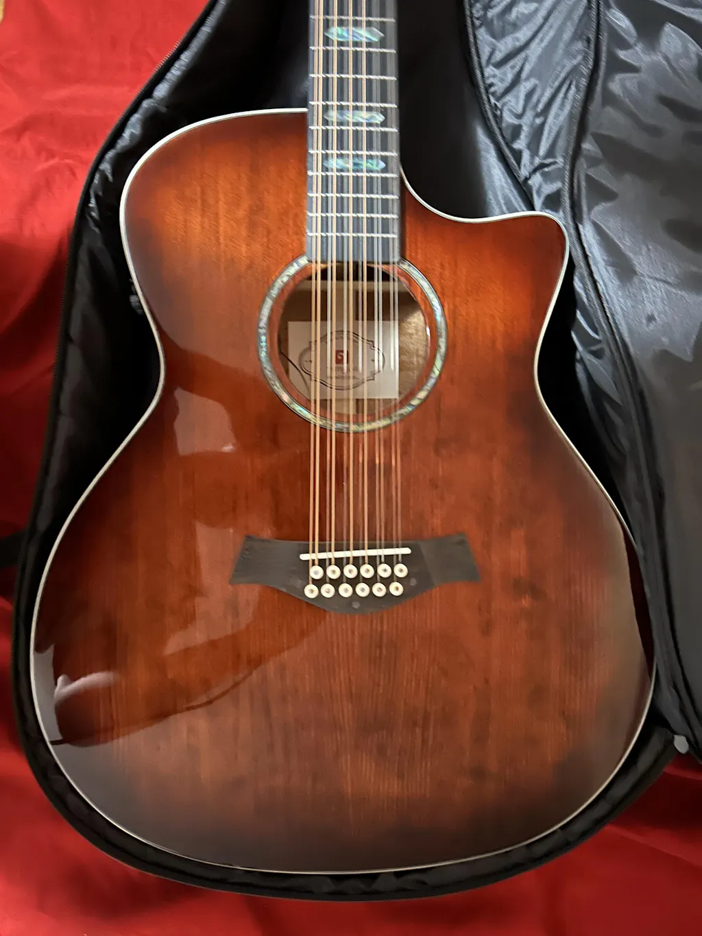Guitare électro-acoustique Vangoa VEG120 Pro 12 cordes en bois massif, avec table en épicéa de qualité supérieure, corps en acajou et égaliseur amélioré.